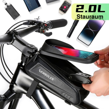 Mit unserer hochwertig verarbeiteten Radsporttasche EasyBag hast Du beides. Einen großen, wasserdichten Stauraum und ein intelligentes Handyfach mit Touchscreen Funktion. Damit lässt sich dein Smartphone perfekt bedienen, ohne dass Du es heraus holen musst.