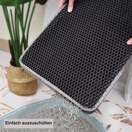 ✔ Praktisch: Kipp die aufgefangene Katzenstreu einfach zurück in das Katzenklo. Die Matte weist eine Öffnung auf, sodass diese wie eine Tasche funktioniert.
